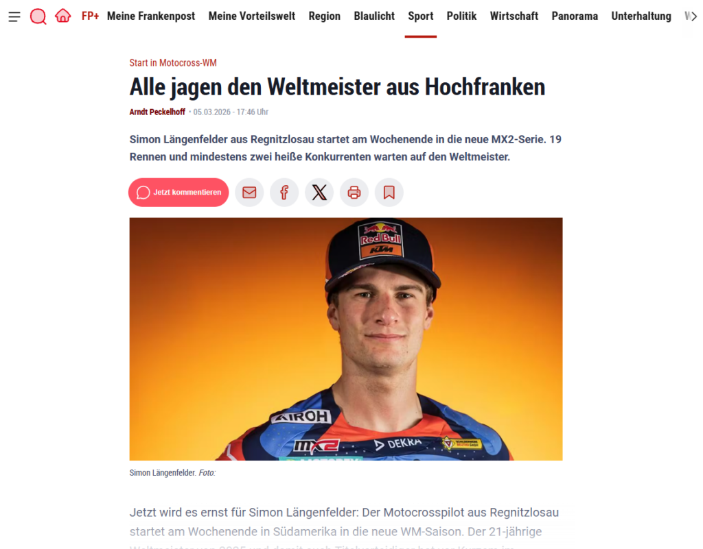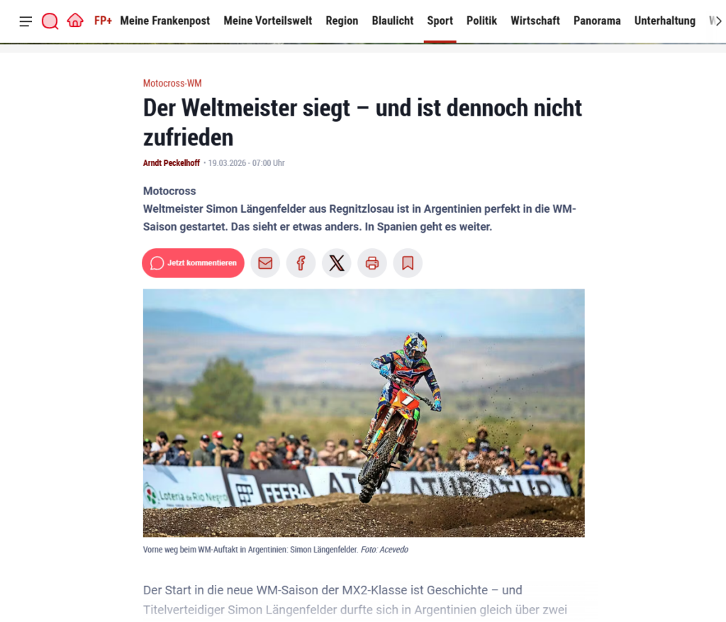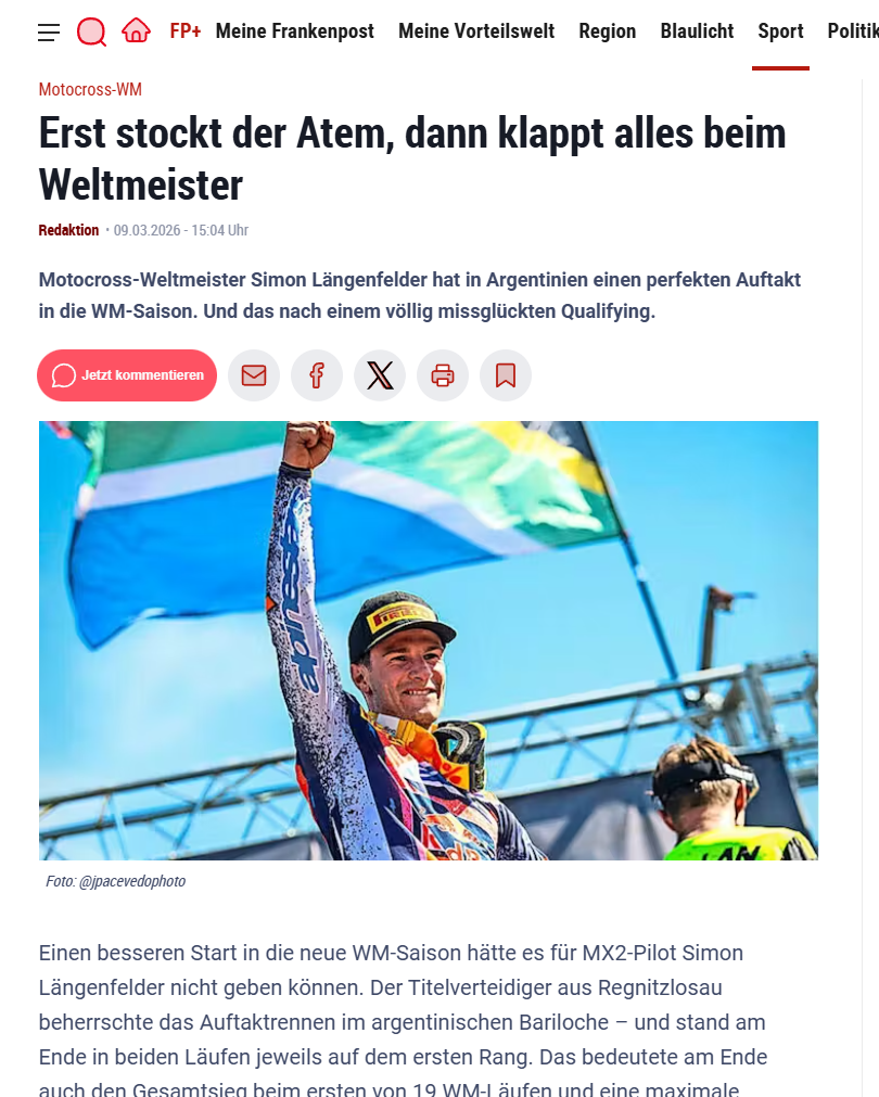 MXGP 2026, Runde 3 von 19, Frauenfeld (Schweiz) Simon Längenfelder ist zurück auf dem Thron…. - Holeshot-Power und taktisches Podium in Andalusien