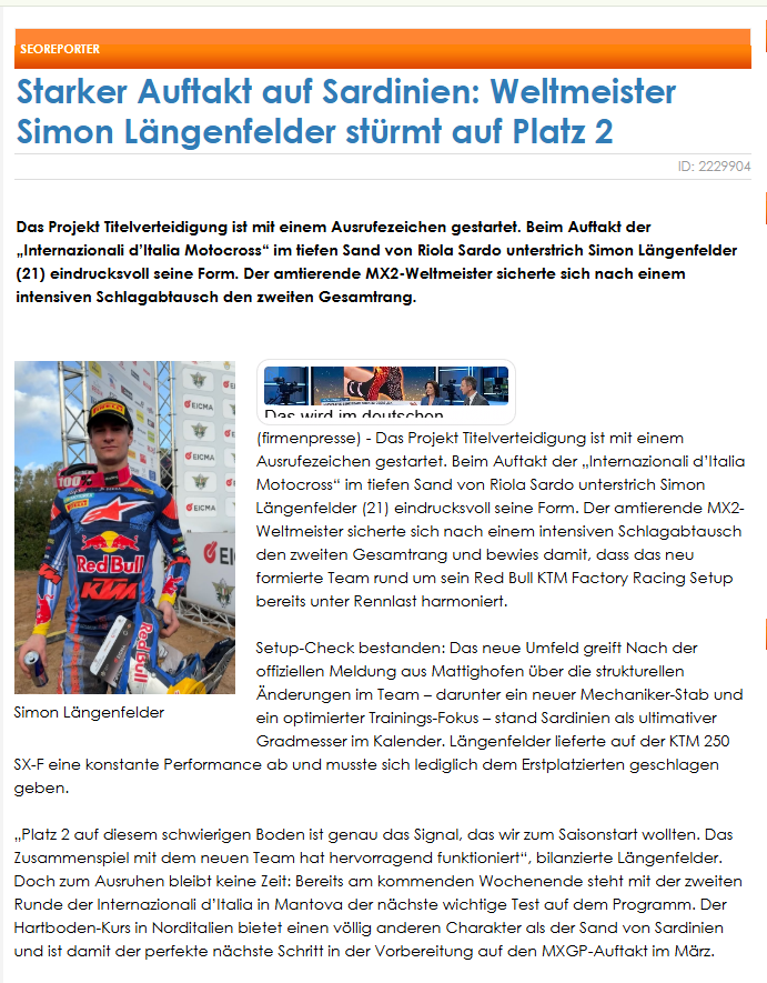 Motocross-Sponsoring 2026 ist mehr als ein Aufkleber auf dem Kotflügel. Aber wie verwandelt man Adrenalin in messbare Neukunden? Wir laden dich ein, uns über die gesamte Saison hinweg über die Schulter zu schauen. In dieser Case Study zeigen wir dir völlig transparent, wie wir die Zusammenarbeit zwischen der SEO-Agentur findling und dem MX2-Weltmeister Simon Längenfelder zum Erfolg führen.